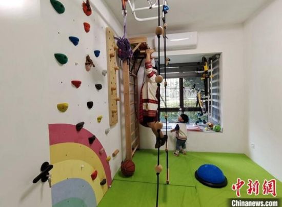 沙部·魯比把房子裝修成了理想的家。他把陽臺弄成了微型“菜園”,種有九層塔、生菜、草莓等植物。把一間客房弄成了微型“運動場”,內設有攀巖墻、跳床、吊環(huán)等10多種運動設施,這里成了他兒子的樂園。