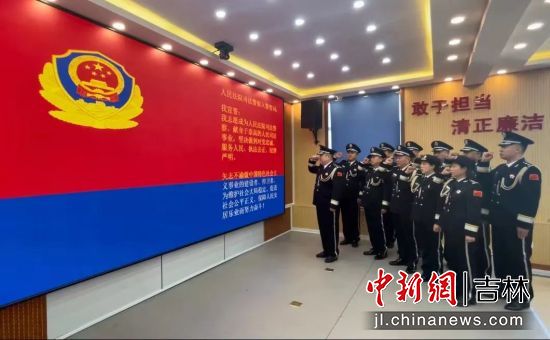 當(dāng)天,該院全體司法警察身著警禮服整齊劃一、警容嚴(yán)整,面對(duì)警旗,莊嚴(yán)的宣誓:“我志愿成為人民法院司法警察,獻(xiàn)身于崇高的人民司法事業(yè),堅(jiān)決做到對(duì)黨忠誠、服務(wù)人民、執(zhí)法公正、紀(jì)律嚴(yán)明……”