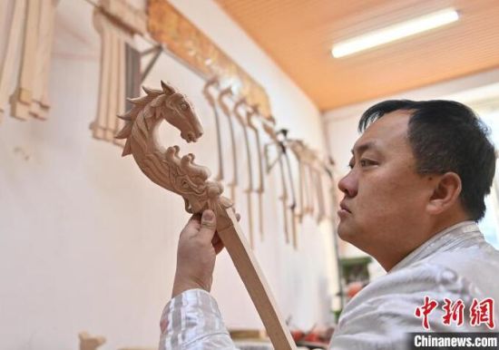 白蘇古郎介紹,最早的琴頭不一定是馬頭,也雕有獸頭、龍頭的。因為這個緣故,他嘗試在馬頭琴雕刻龍頭,竟出乎意料地受顧客喜愛!斑@不是為了應(yīng)龍年的景做的,龍是中華民族的圖騰,在馬頭下面加上龍頭,寓意為‘龍馬精神’,這是中華民族的精神內(nèi)核之一!