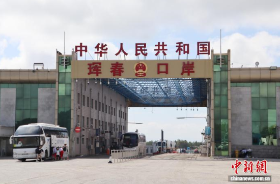 7月19日,吉林琿春,運(yùn)輸?shù)弁跣返目ㄜ嚺抨?duì)入關(guān)!≈行律缬浾 蔣文月 攝