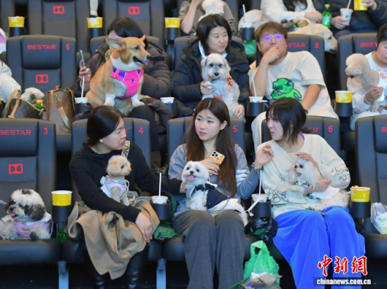 12月5日晚,吉林長(zhǎng)春,兩只“汪星人”在觀影。近日,吉林長(zhǎng)春一家影院創(chuàng)新推出“寵物陪伴觀影”特色專場(chǎng),吸引不少市民帶著愛(ài)寵一同走進(jìn)電影院,共享觀影樂(lè)趣。為提升“人寵共處”的體驗(yàn),影院專門對(duì)場(chǎng)內(nèi)光線與音量進(jìn)行了適應(yīng)性調(diào)整,并提前備好寵物坐墊、尿不濕等應(yīng)急物品,力求為寵物和主人打造一個(gè)舒適、安心的觀影環(huán)境。中新社記者 張瑤 攝