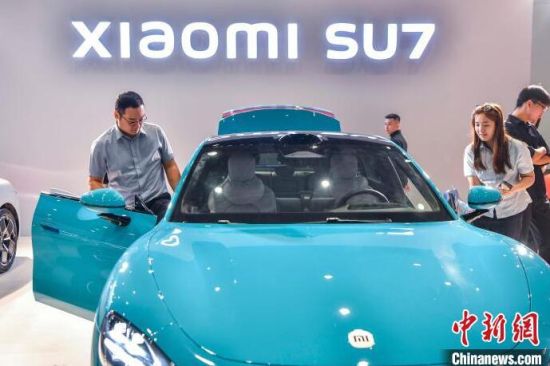 9月13日,海南?,車模助陣海南金秋車展。當日,因超強臺風“摩羯”而兩度延期的2024海南金秋車展暨智能網(wǎng)聯(lián)新能源車展在?谂e行。作為臺風災后海南的首場車展,本次展出面積達5萬平方米,共有近百個汽車品牌參展,其中新能源車型占比70%。中新社記者 駱云飛 攝