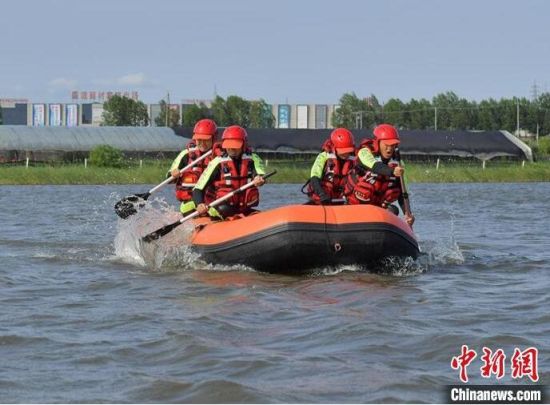 森林消防在水面上進(jìn)行無動(dòng)力劃艇。