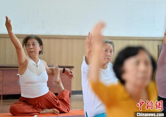 10月24日,在位于吉林長春的吉林省老年大學(xué),老年人在練習(xí)瑜伽。近來,越來越多老年人在運動中煥新生活,瑜伽也不再是年輕人的專屬。在老年人的眼中,瑜伽鍛煉了體態(tài)和精神面貌,讓他們看起來“越來越年輕”。中新社記者 張瑤 攝