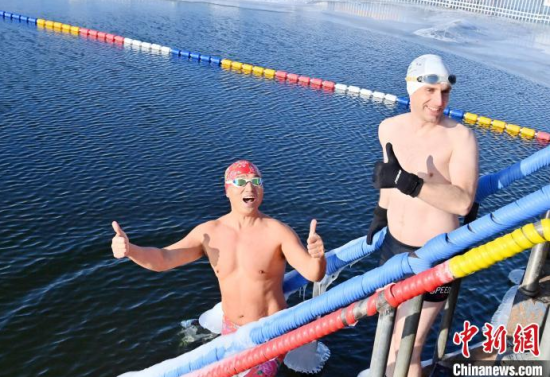 吉林長(zhǎng)春:中外冬泳愛(ài)好者冰湖暢游迎新年