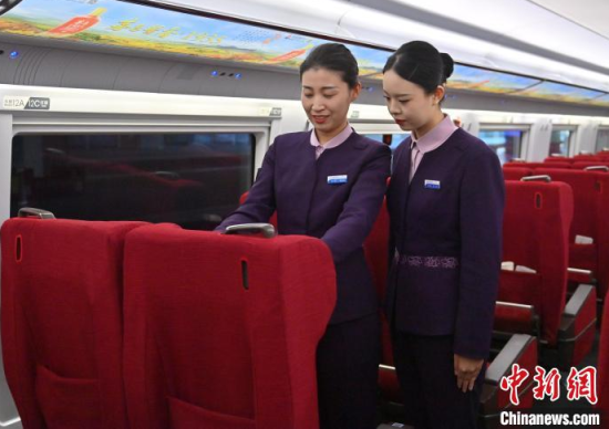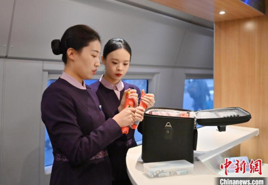 1月7日,吉林長春,“動姐”在進行安全知識培訓。春運臨近,為提升服務品質(zhì),沈陽局集團公司長春客運段動車一隊的乘務員們利用業(yè)余時間開展基礎禮儀、職業(yè)形象、服務技巧等內(nèi)容的培訓。中新社記者 張瑤 攝