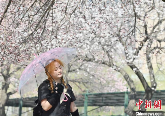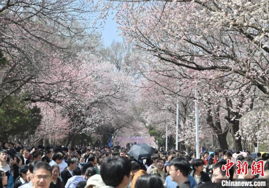 4月20日,吉林長春,吉林大學(xué)校園內(nèi)杏花競相綻放,匯成粉白色的海洋,吸引市民前來賞花、拍照。  中新社記者 張瑤 攝