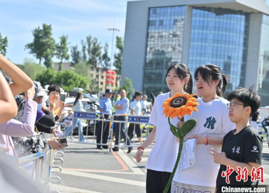 6月7日,吉林省長(zhǎng)春市,在吉林省實(shí)驗(yàn)中學(xué)考點(diǎn),陪考人員為考生加油。當(dāng)日,2025年全國(guó)高考拉開(kāi)帷幕。中新社記者 張瑤 攝