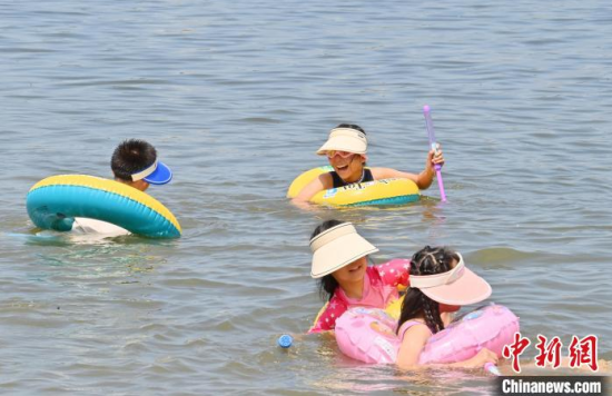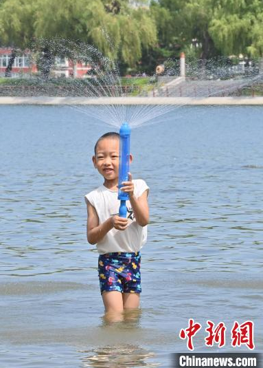 7月8日,吉林長(zhǎng)春,小朋友來到南湖公園戲水避暑。長(zhǎng)春的高溫“桑拿天”已持續(xù)多日,大批市民來到公園親水納涼。中新社記者 張瑤 攝