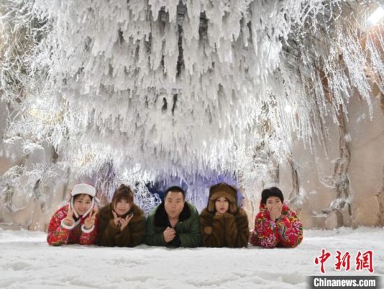 游客在“雪洞”拍照留念!∮陧 攝