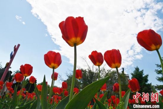 5月15日,在長春市長春公園內(nèi),近十萬株郁金香競相綻放,吸引了眾多游客前來觀賞。(資料圖) 張瑤 攝